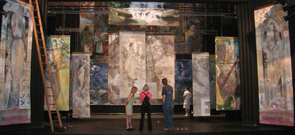 | Price’s work has captivated public attention since his days in art school. His paintings have appeared in numerous shows in Birmingham, Atlanta, New Orleans, and New York. One exciting show was his installation of 37 very large-scale paintings at the newly renovated Virginia Samford Theater in 2002. Many of the paintings moved on rails accompanied by music selected to heighten their expressive power. The audience was encouraged to enter the stage and move among these unfolding presences. James R. Nelson, the visual art critic of The Birmingham News, wrote of this instillation:”The Virginia Samford Theater....has been transformed into a gallery of unprecedented beauty by the enchanting paintings of Arthur Price. This presentation evolves into a remarkable and memorable presentation of art works that will be talked about for years to come. Entering the auditorium is like walking into a secular cathedral. Breathtaking and inspiring....” (9/18/2002) |